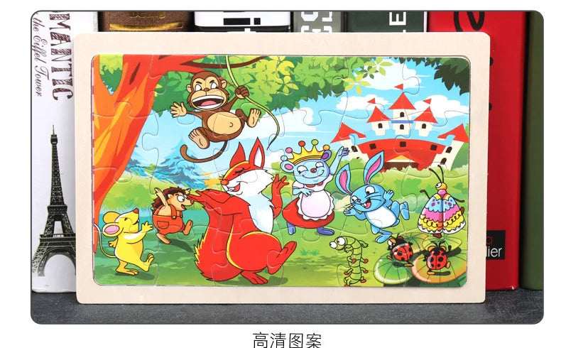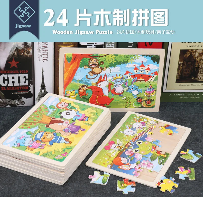 New 24 Pieces Wooden Puzzles Kids Cartoon Animal Wood Jigsaw Early Educational Learning Toys for Children GIFT